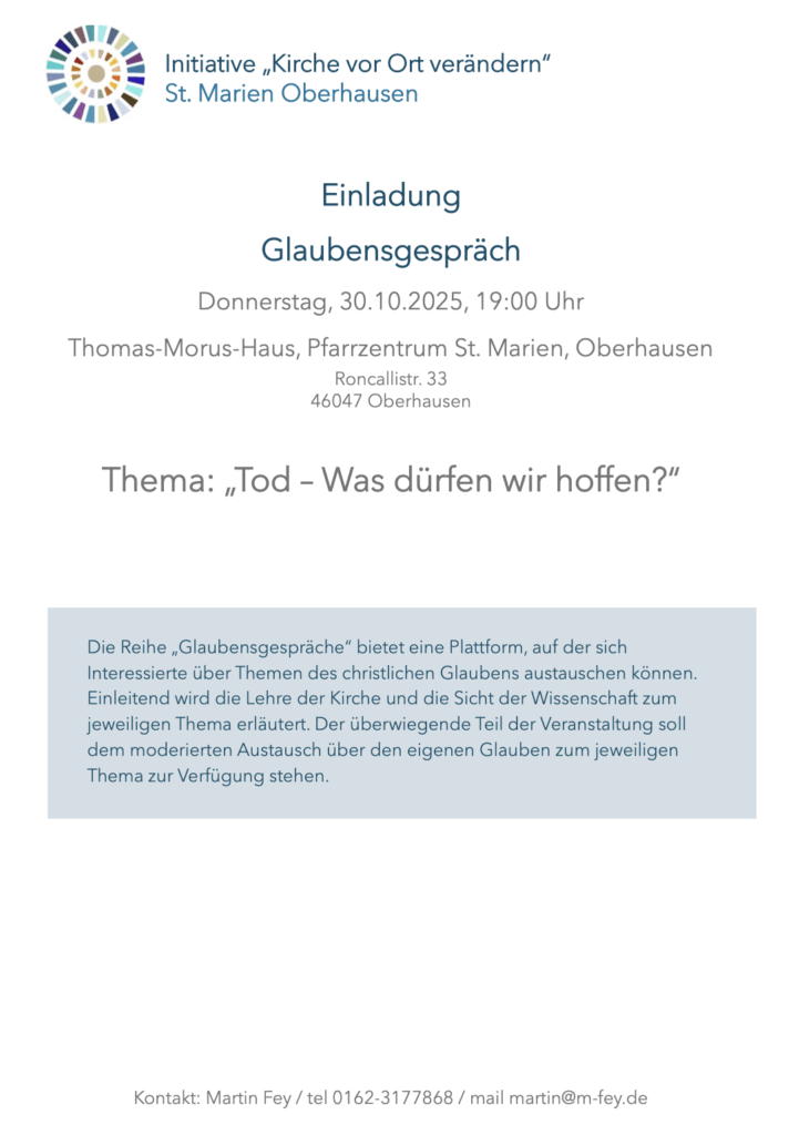Weitere Informationen: https://www.bistum-essen.de/info/pfarreien-gemeinden/kirche-neu-gestalten